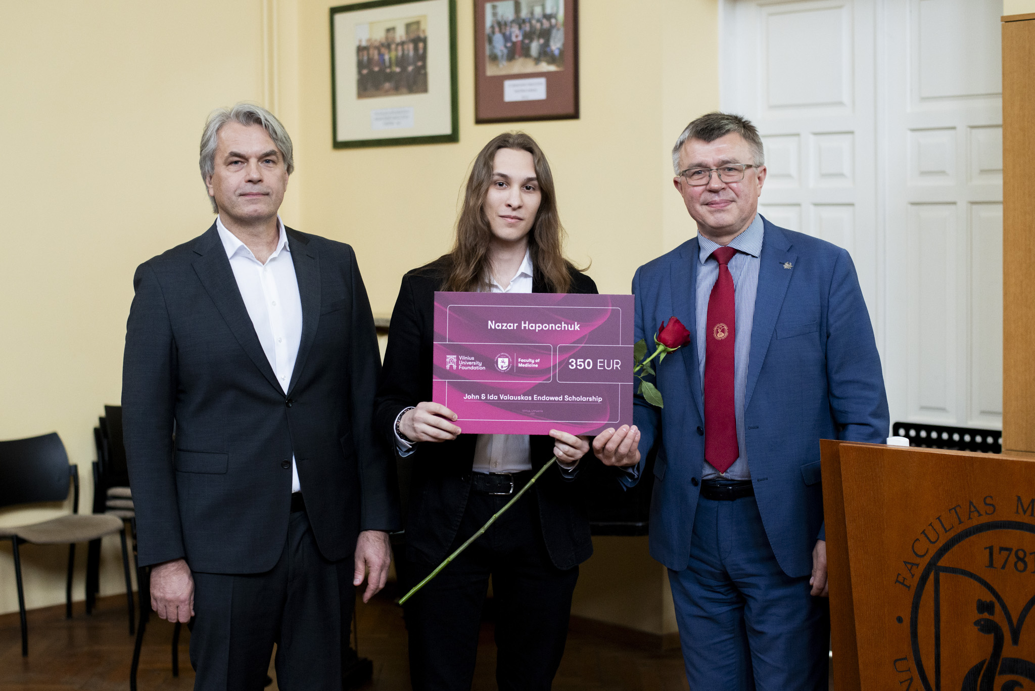 2026 m. kovo 31 d. vykusiame VU Medicinos fakulteto Tarybos posėdyje buvo įteiktos John ir Ida Valauskų neliečiamojo kapitalo subfondo stipendijos keturiems geriausiai besimokantiems studentams, turintiems aukščiausius svertinius vidurkius.